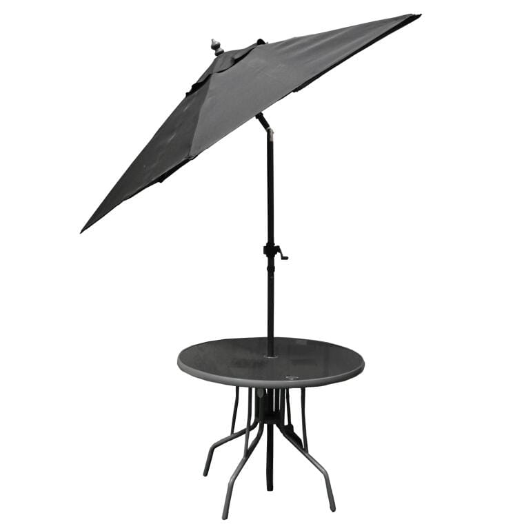 Okrągły Stolik Ogrodowy ze Szklanym Blatem i Czarnym Stelażem ze Stali z Parasolem 200cm