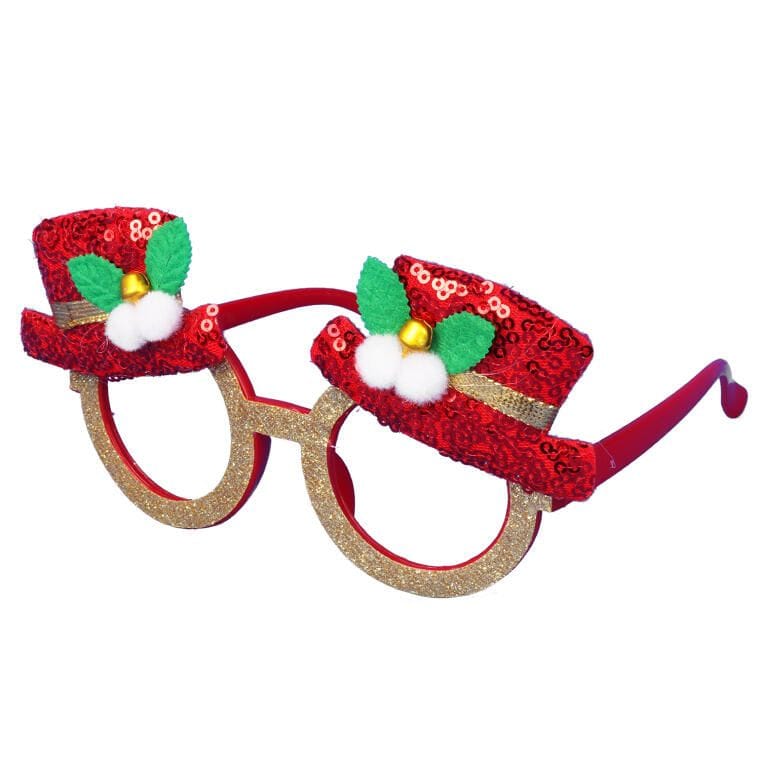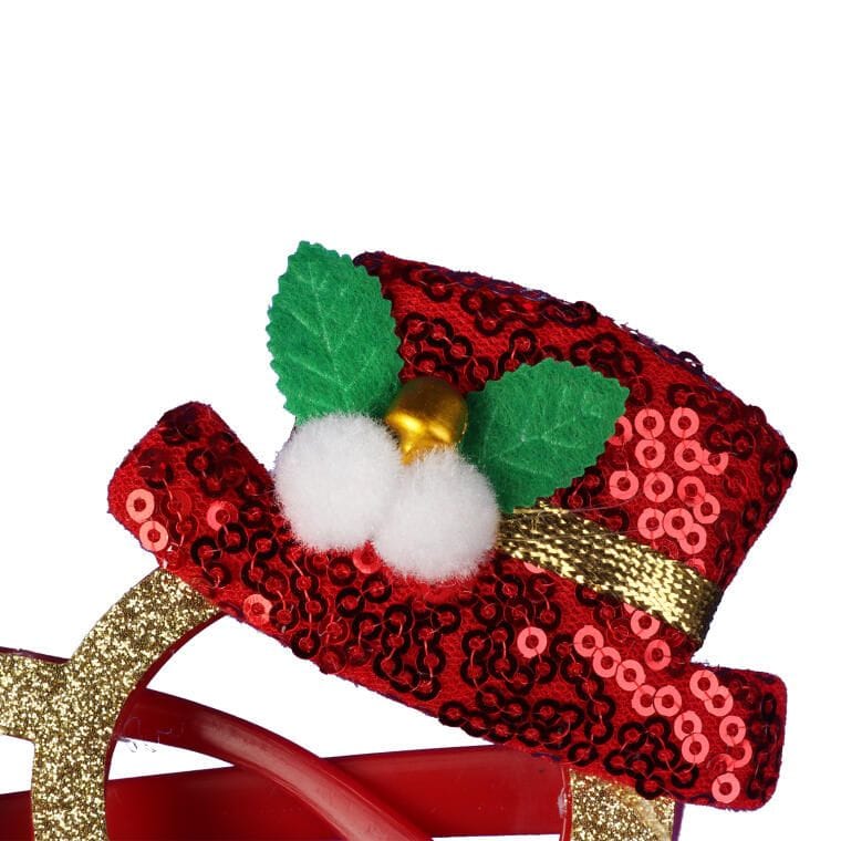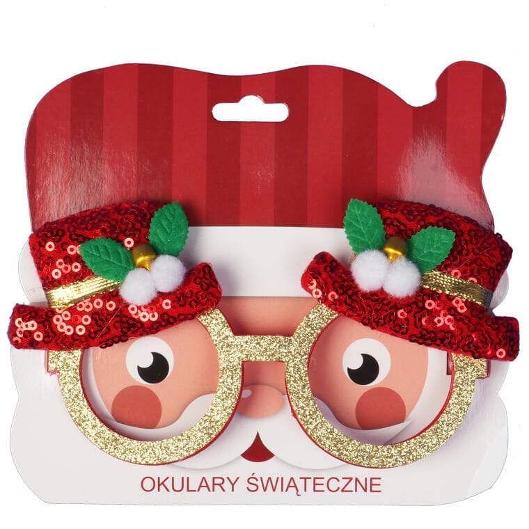 OKULARY ŚWIĄTECZNE BROKATOWE Z KAPELUSZKAMI W KOLORZE CZERWONYM