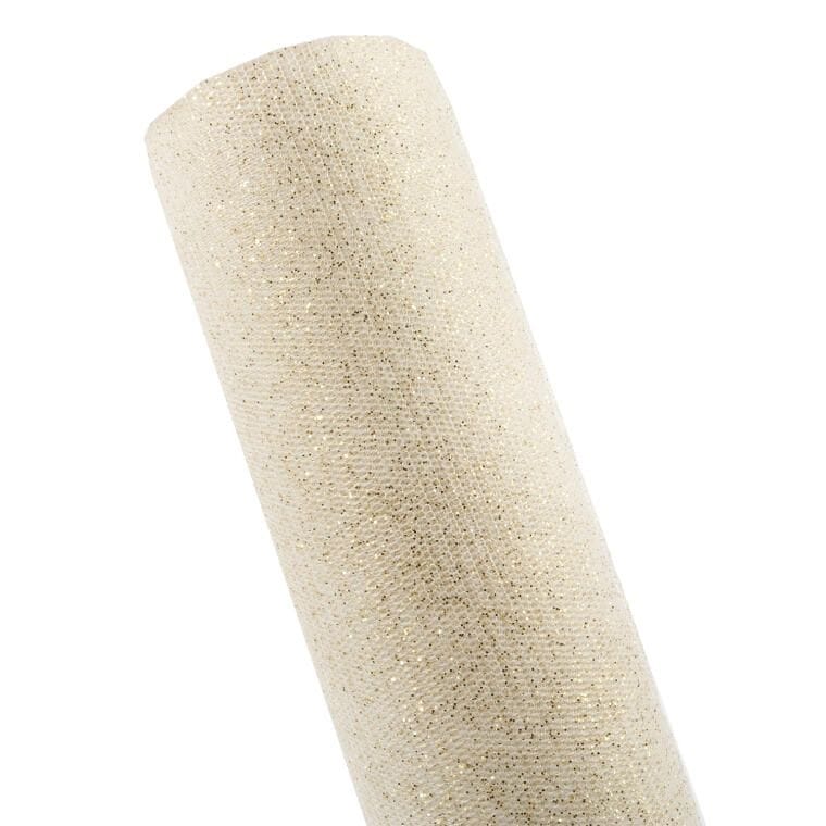 Organza Tiulowa w Złotej Siateczce ze Świecącym Brokatem 50cmx10m