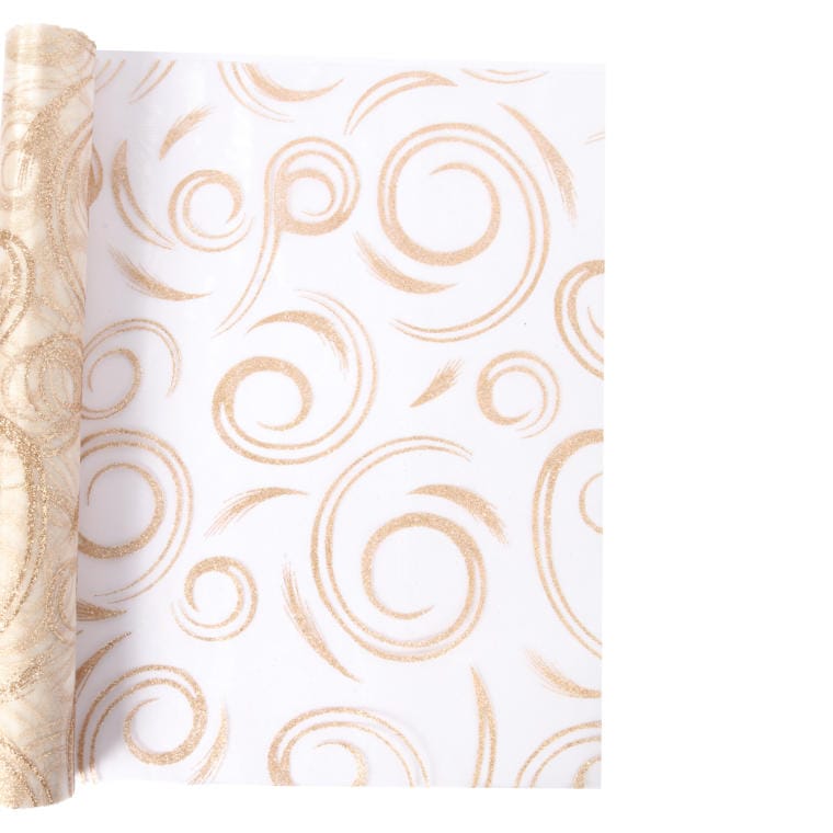 Organza Złota z Brokatowym Wzorem na Szpuli 35 cm x 5m