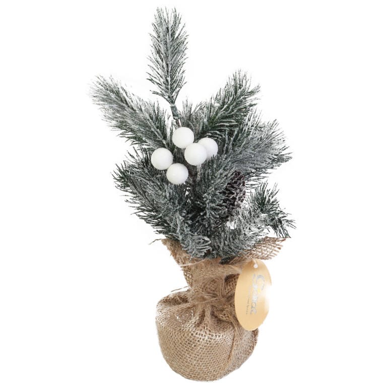 Ośnieżona choinka w jucie z dekoracją 28 cm