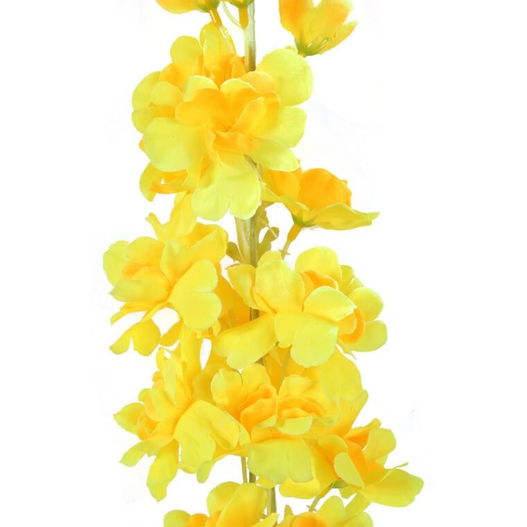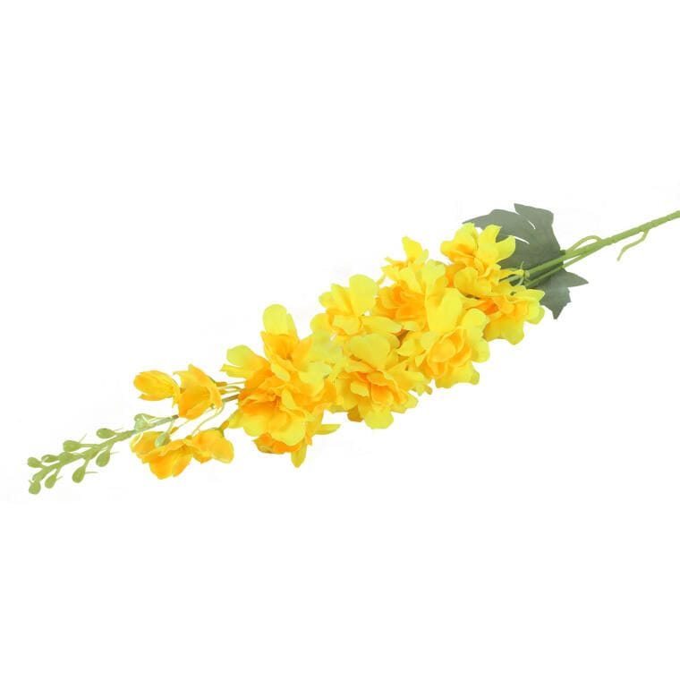 Sztuczna ostróżka to elegancka gałązka z dwoma realistycznymi kwiatami, wykonana z wysokiej jakości materiału, który sprawia, że do złudzenia przypomina żywą roślinę. Doskonale prezentuje się jako samodzielna dekoracja w wazonie lub jako element kompozycji kwiatowych, wprowadzając do wnętrza naturalny urok i świeżość. Trwała, estetyczna i łatwa w utrzymaniu, idealnie udekoruje salon, biuro czy restaurację. Wysokość: 87 cm.