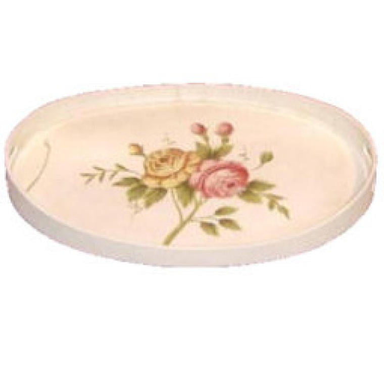 Owalna Taca Rustykalna z Ręcznie Malowanymi Kwiatami, Rozmiar Średni