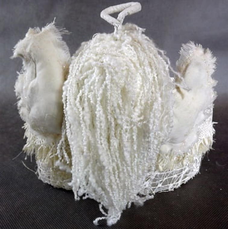 Owalny Koszyk Sizalowy z Białym Aniołem Pokrytym Opalizującym Brokatem