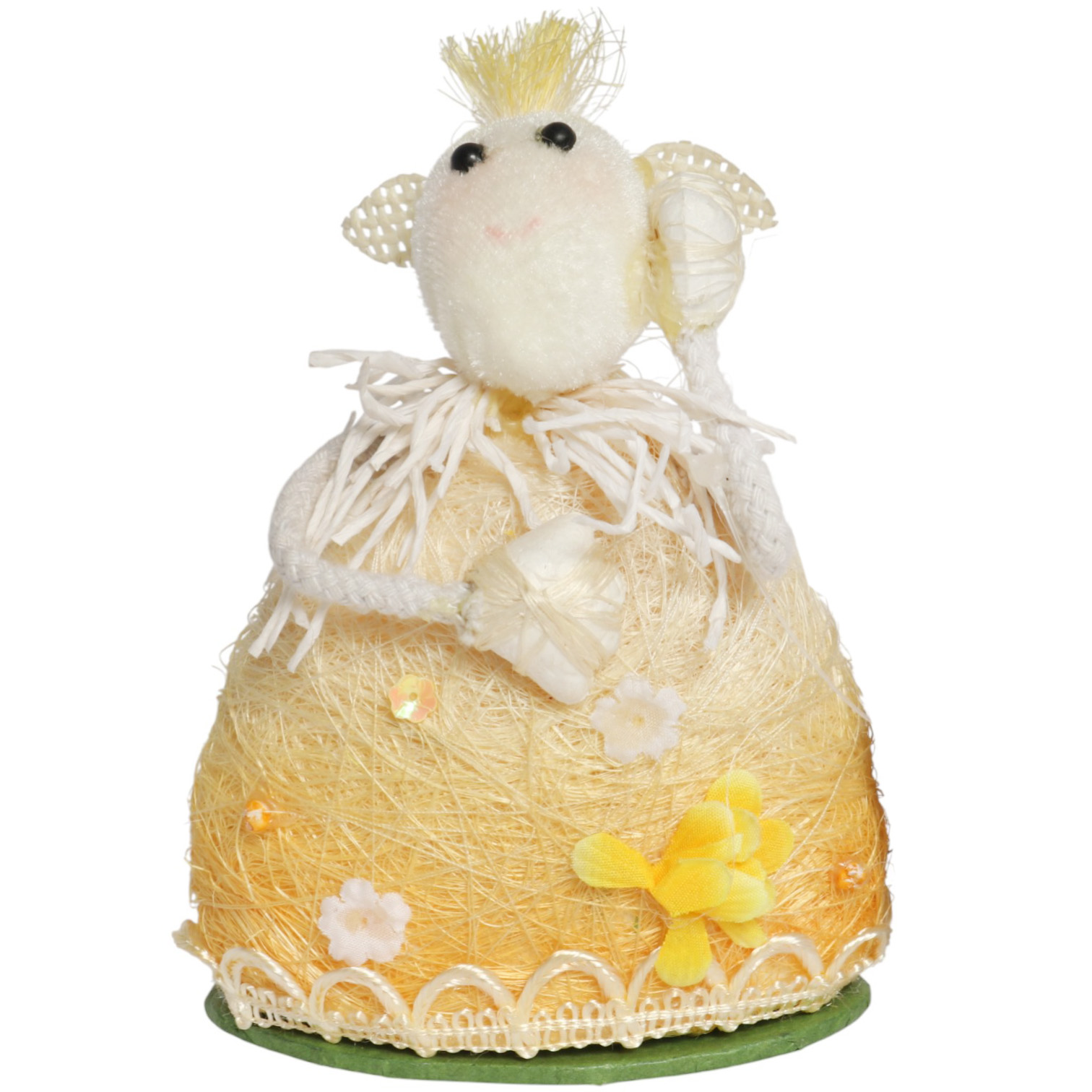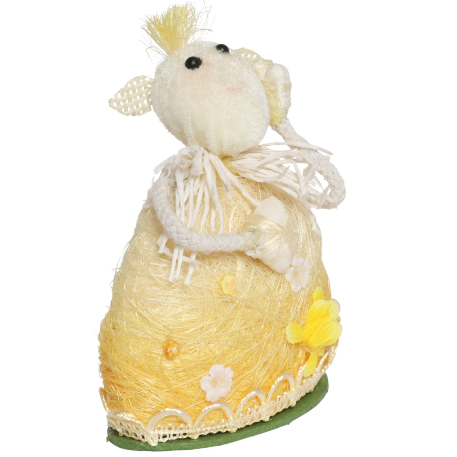 Owieczka z sizalu Baranek stojący dekoracja wielkanocna 15 cm żółty