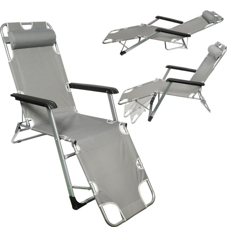 OXFORD LEŻAK FOTEL OGRODOWY SKŁADANY STABILNY I WYGODNY, IDEALNY DO OGRODU, NA TARAS I NA PLAŻĘ Solidny składany leżak / fotel wypoczynkowy. Stelaż wykonany z wytrzymałego metalu malowanego proszkowo. Możliwość ustawienia w trzech pozycjach: leżąca półleżąca półsiedząca Zdejmowany podgłówek. Po złożeniu zajmuje mało miejsca, łatwy w przechowywaniu. Wymiary: szerokość siedziska – 47cm wysokość od ziemi do szczytu oparcia – 93 cm długość całkowita – 178 cm szerokość całkowita – 61cm Wymiary po złożeniu: wysokość – 98 cm szerokość – 61 cm Kolor stelarza: srebrny Kolor siedziska: szary