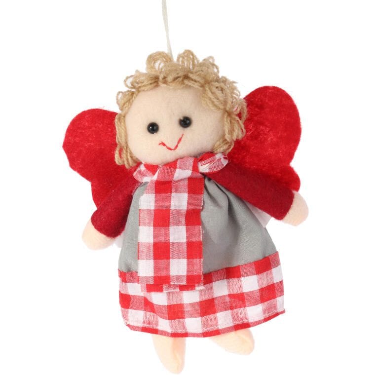 Ozdoba bożonarodzeniowa zawieszka ANIOŁEK z materiału 15 cm CZERWONA
