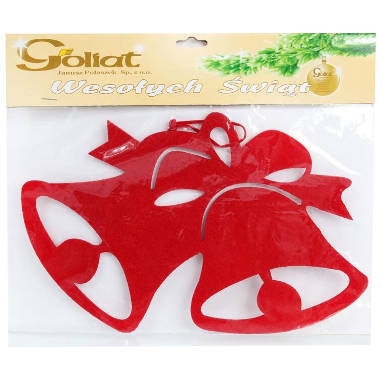 Ozdoba bożonarodzeniowa zawieszka filcowa DZWONY 30 cm CZERWONA