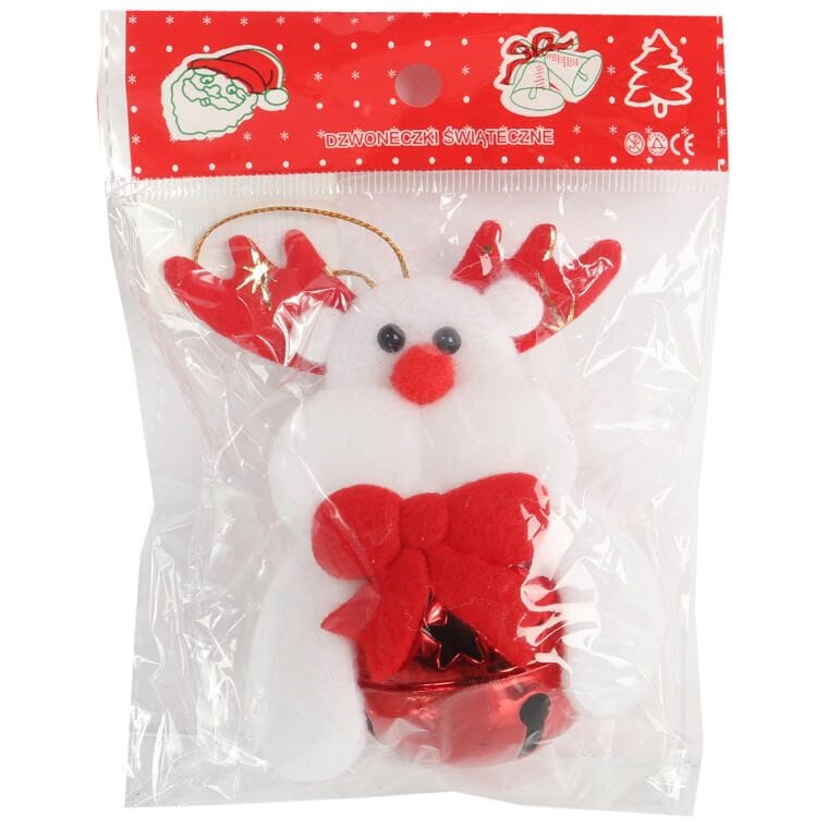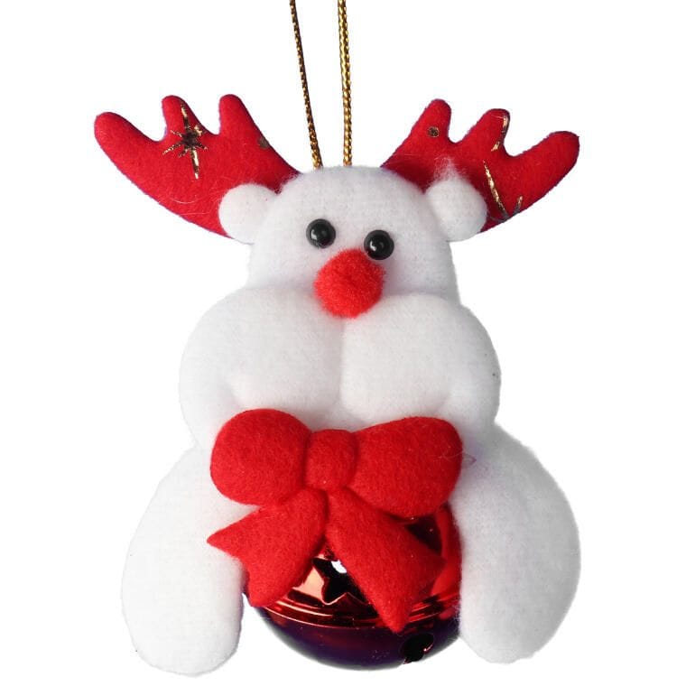 Ozdoba bożonarodzeniowa zawieszka RENIFER Z DZWONECZKIEM 9 cm BIAŁY