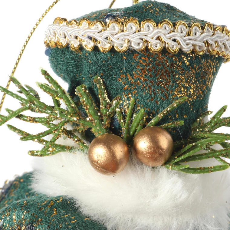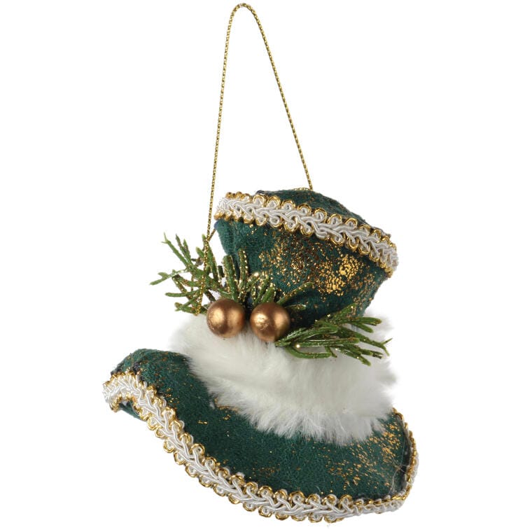 Ozdoba bożonarodzeniowa zawieszka welurowy KAPELUSZ ZIELONY 9 cm