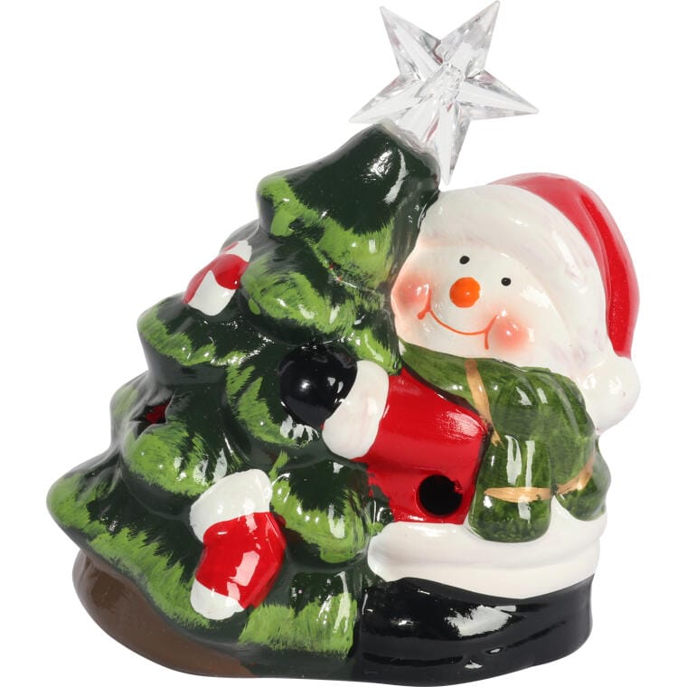 Ozdoba świąteczna ceramiczny BAŁWAN z choinką LED 12.5 cm