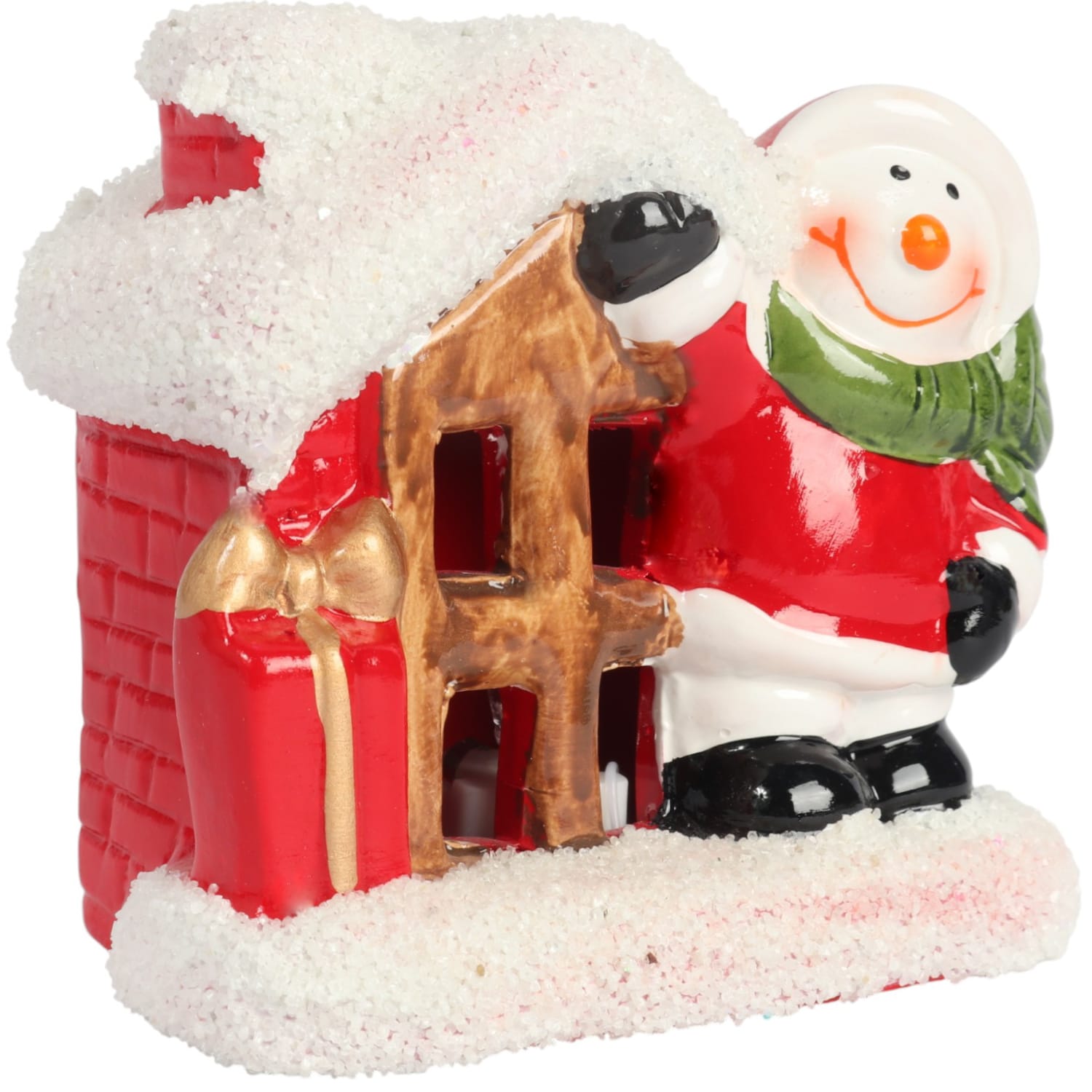 Ozdoba świąteczna ceramiczny Domek z Bałwankiem LED 9 cm