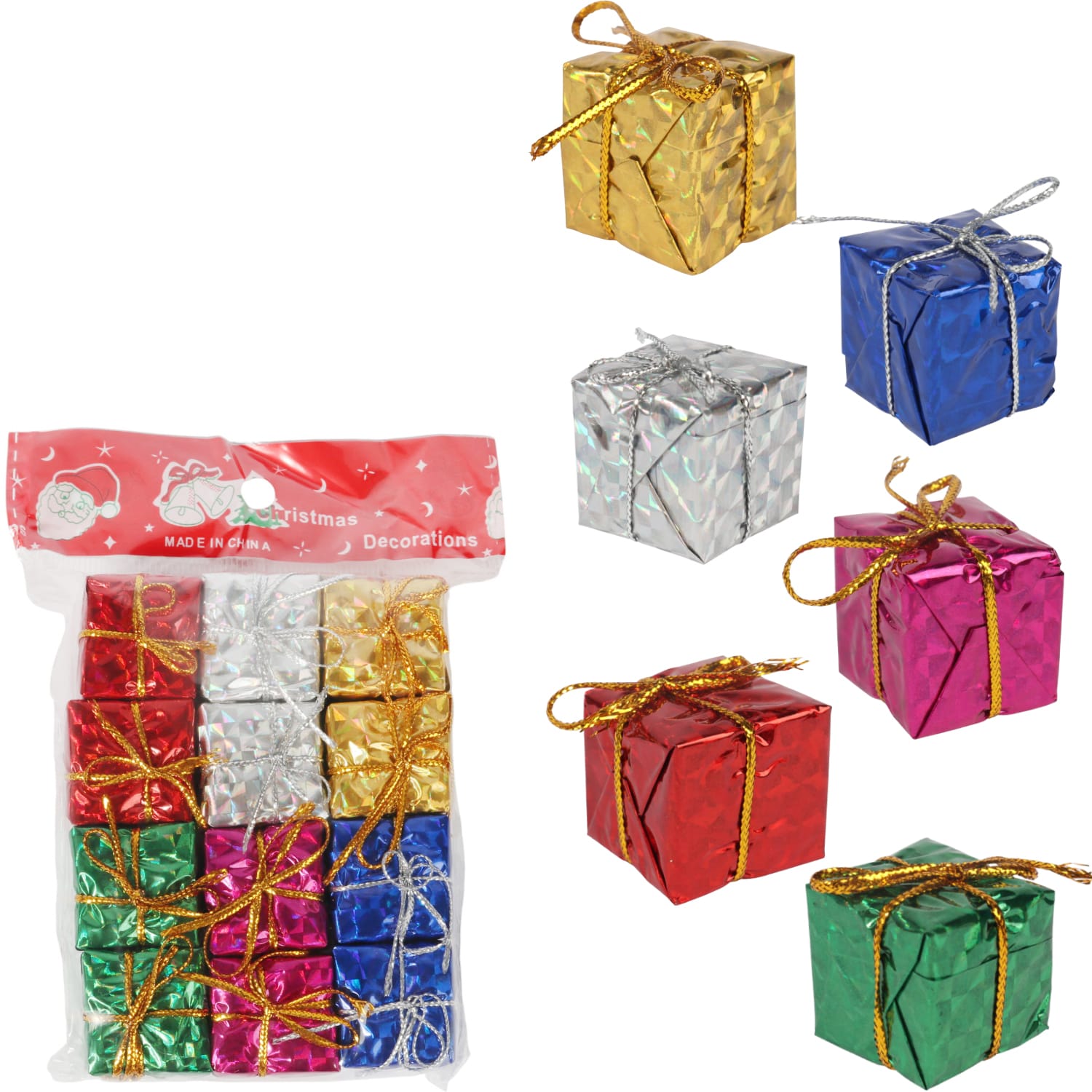 Paczuszki prezentowe na choinkę zawieszki świąteczne Zestaw 12 sztuk