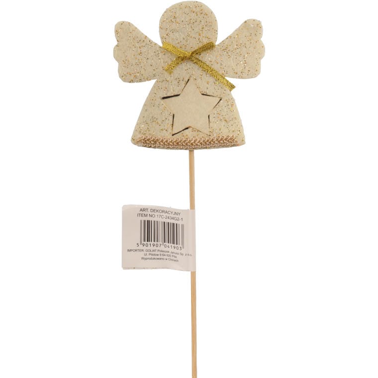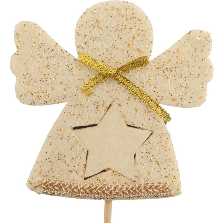 Pik w postaci aniołka filcowego w kolorze kremowym ze złoceniami to urocza ozdoba, która doskonale wkomponuje się w bożonarodzeniowy wystrój. Wykonany z wysokiej jakości filcu, aniołek charakteryzuje się delikatnością i elegancją, a złote akcenty dodają mu wyjątkowego blasku.