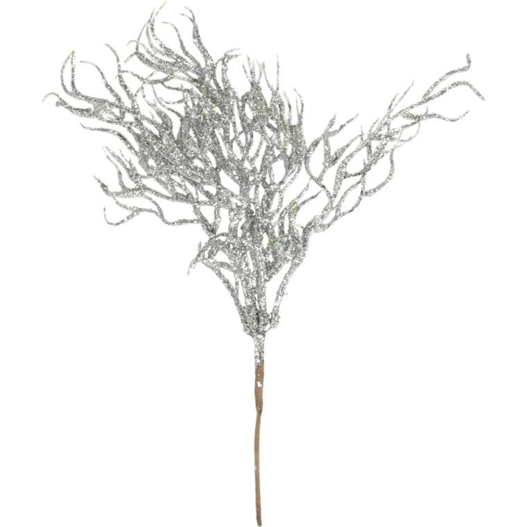 PIK Z BROKATOWYMI GAŁĄZKAMI 30 CM SREBRNY