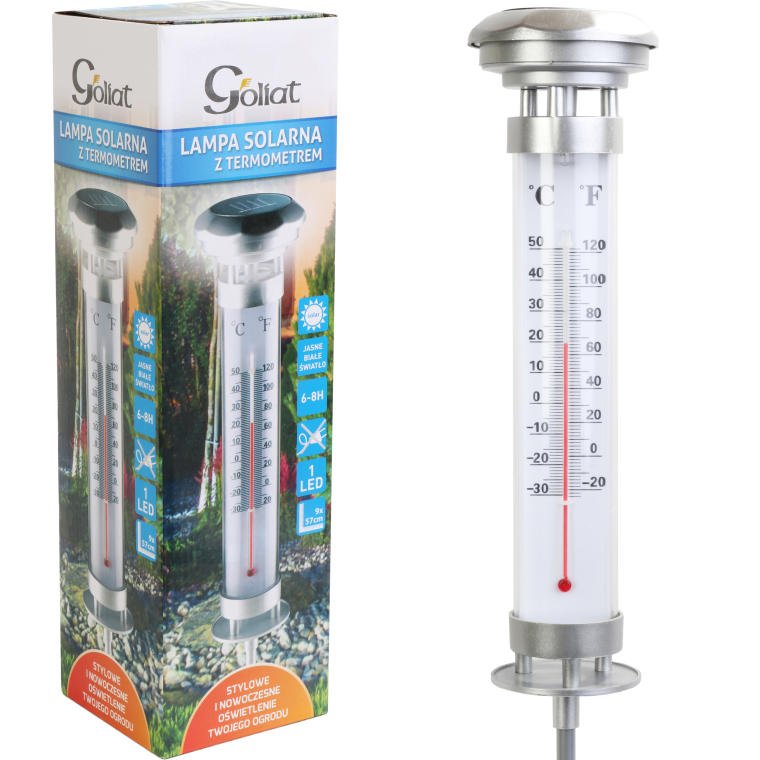 Podświetlany Solarny Termometr Ogrodowy LED GOLIAT