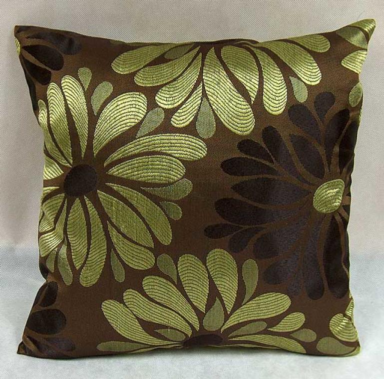 Poduszka dekoracyjna brązowa z zielonym wzorem kwiatowym 40×40 cm (bez wkładu)