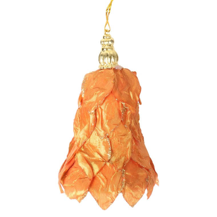 Pomarańczowa bombka w kształcie dzwonka z brokatowym wykończeniem 12 cm