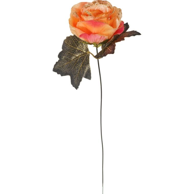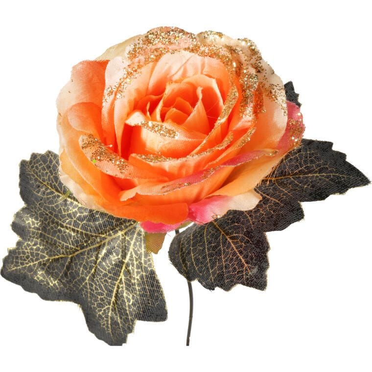 Strona główna » Produkty » Pomarańczowa Róża Satynowa z Złotym Brokatem – Sztuczna Kwiatowa Dekoracja o Wysokości 62 cm