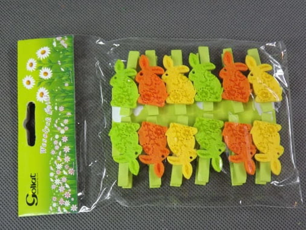 Ten uroczy komplet 12 drewnianych klamerek z filcowymi zajączkami, o wymiarach 4,5×2 cm, to idealny dodatek do wiosennych i wielkanocnych dekoracji. Każda klamerka jest ozdobiona małym, filcowym zajączkiem, co dodaje jej wyjątkowego uroku i wprowadza radosny, świąteczny nastrój. Doskonale sprawdzą się do przyczepiania kartek, bilecików, zdjęć lub jako ozdoba na gałązkach czy wielkanocnych stroikach. Wykonane z naturalnego drewna i miękkiego filcu, te klamerki łączą w sobie styl i funkcjonalność, stanowiąc wspaniałą dekorację na stół, półkę czy parapet.