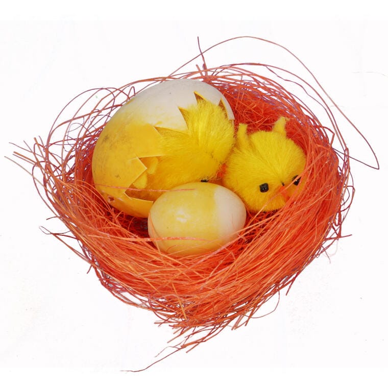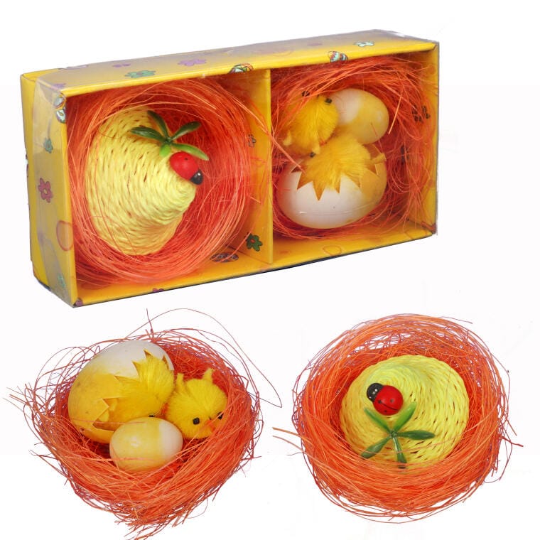 Pomarańczowe Gniazdka z Figurkami Kurczaka i Pisklęcia – Dekoracja Wielkanocna 2szt