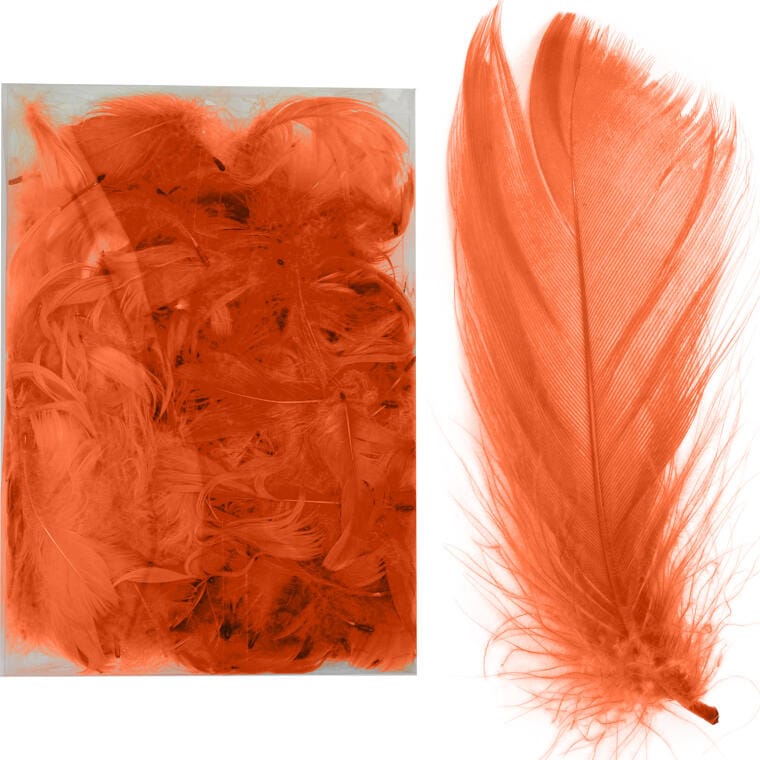 Pomarańczowe Pióra Dekoracyjne w Przezroczystym Boksie PVC