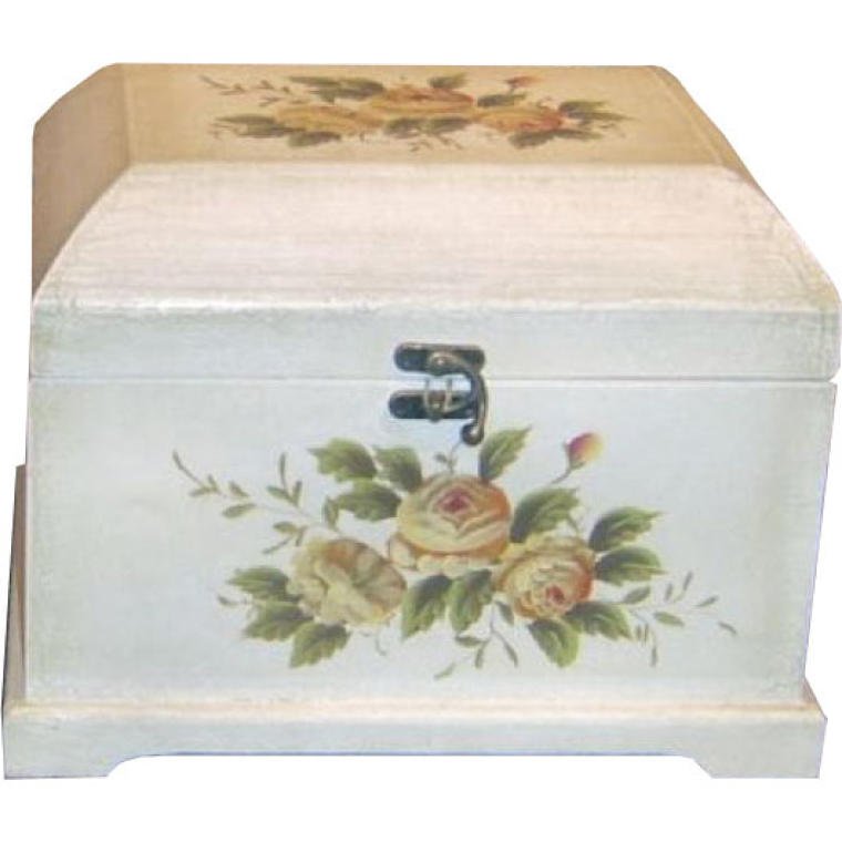 Postarzany Drewniany Kuferek z Ręcznie Malowanymi Kwiatami – Wielki Rozmiar