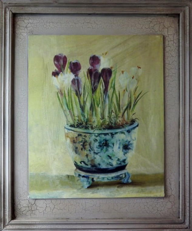 Postarzany Obraz Krokusy w Koszyczku – Seria Limitowana