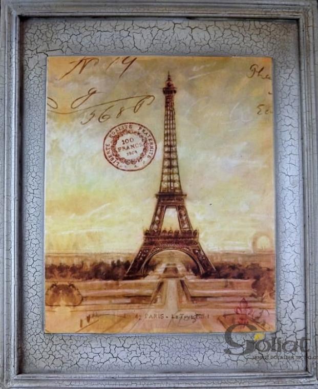 Obraz przedstawiający Wieżę Eiffla to niezwykła dekoracja, która przenosi nas do romantycznego Paryża. Wykonany z dbałością o szczegóły, obraz cechuje się specjalnie uzyskanym efektem postarzania, nadającym mu elegancki, vintage’owy charakter.