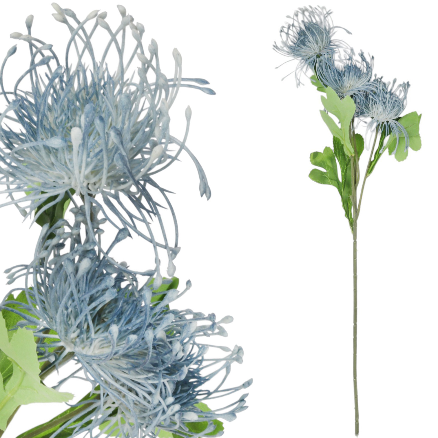 PROTEA gałązka 3 kwiatów dodatek kolor Niebieski