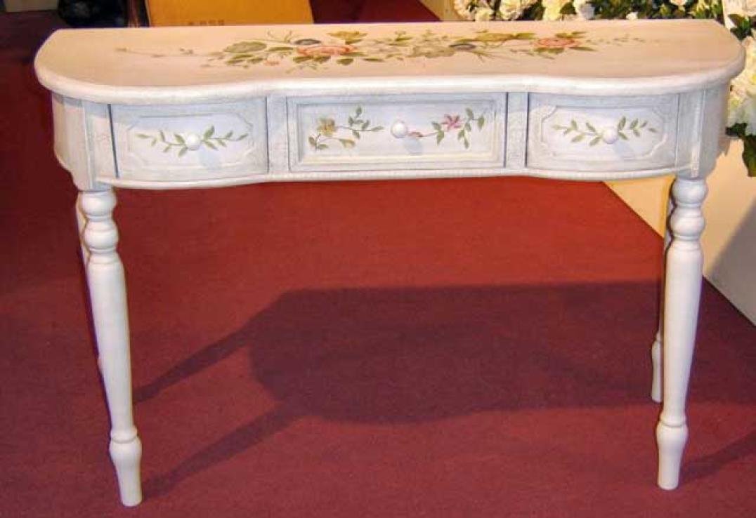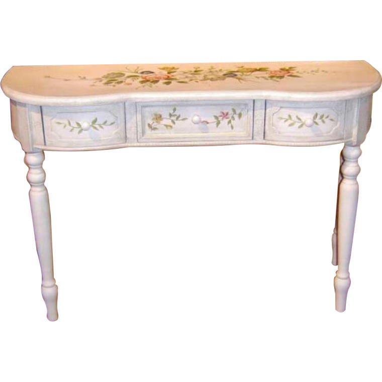 Prowansalska Toaletka z Ręcznie Malowanymi Kwiatami i Aksamitnym Wykończeniem