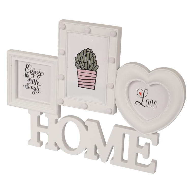 Ramka na zdjęcia HOME z białego plastiku z oświetleniem LED