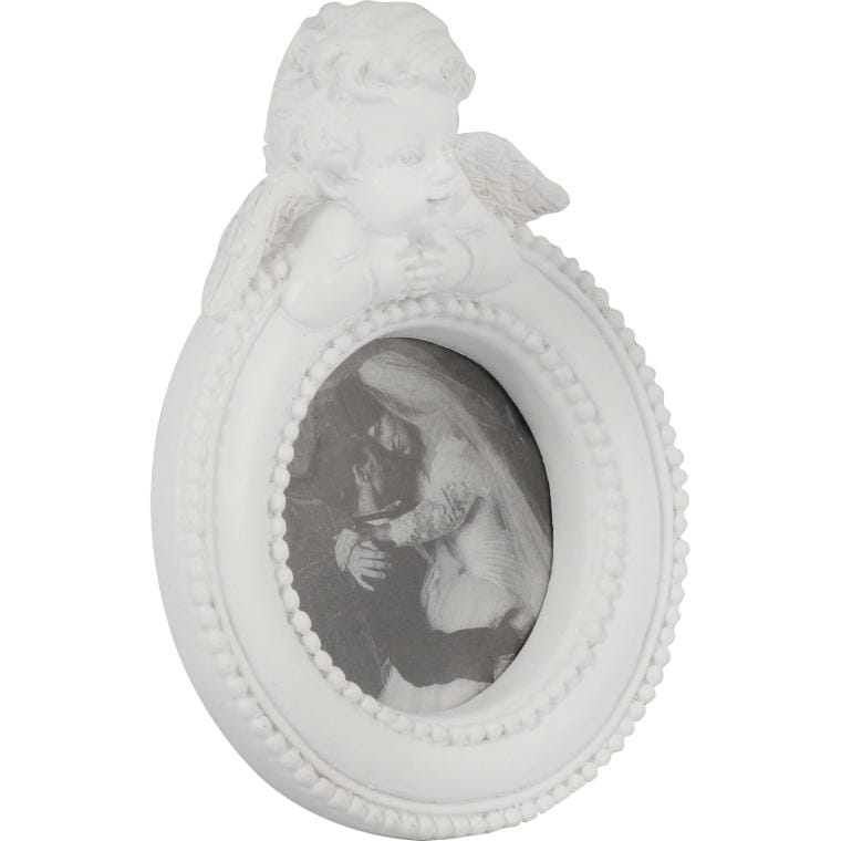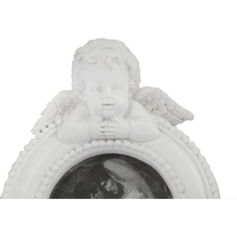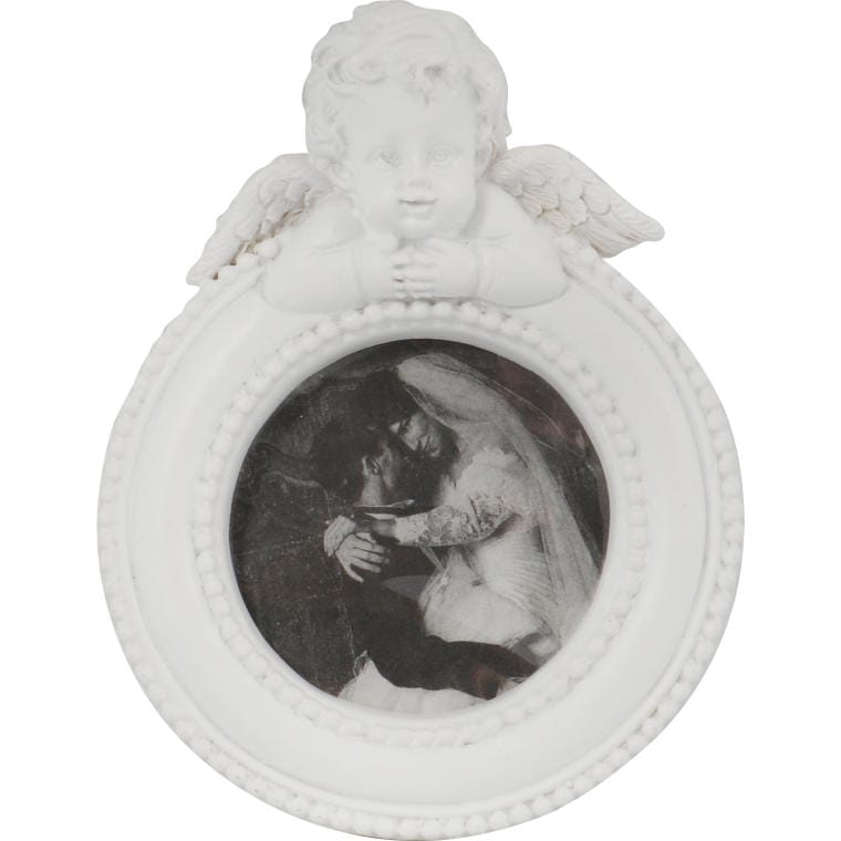 Ramka na zdjęcie okrągła z aniołkiem biała 9×7 cm