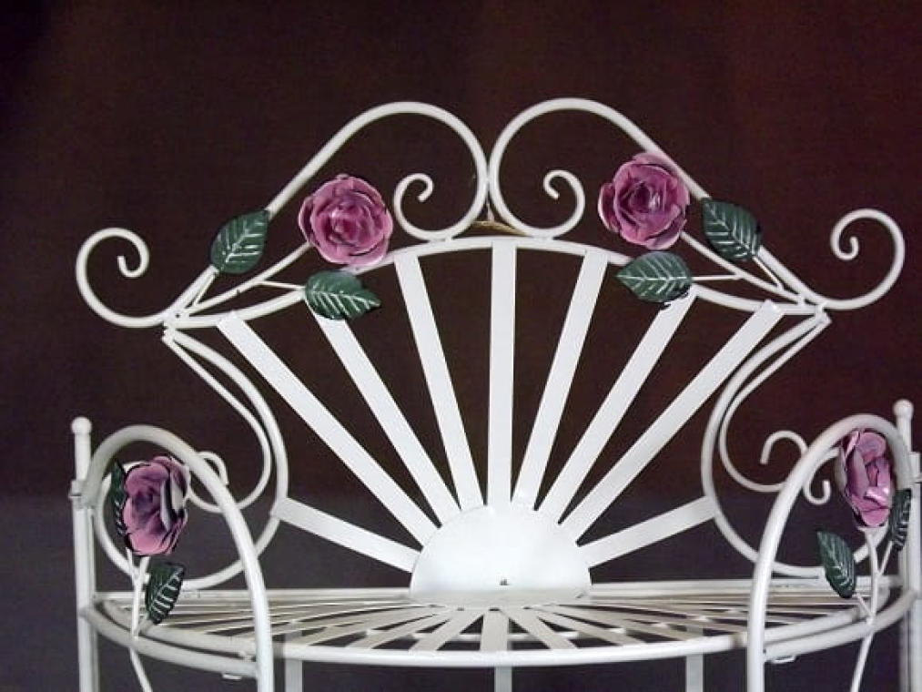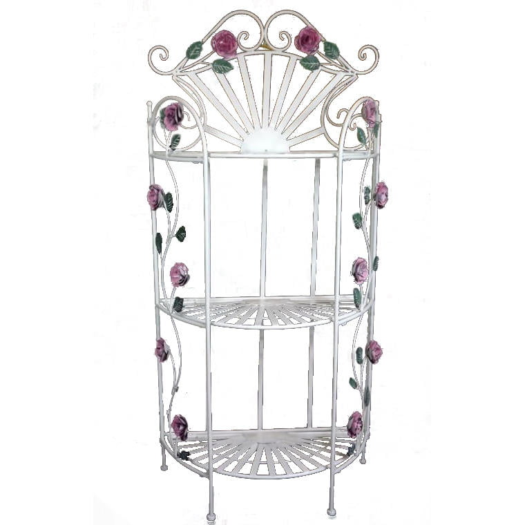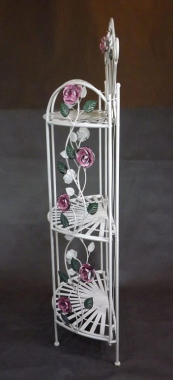 Regał Prowansalski z Różami – Trzy Półki, Metaloplastyka Jasny Kolor, Składany 125x60x27cm