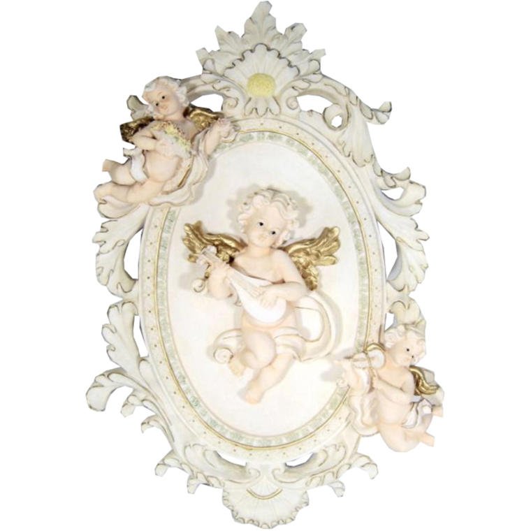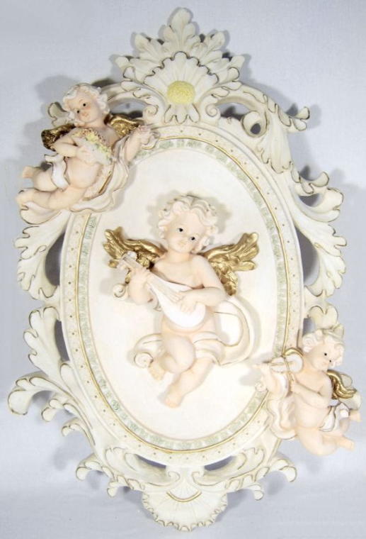 Romantyczna Płaskorzeźba Anioła do Zawieszenia z Polirezynu w Kolorze Kremowym
