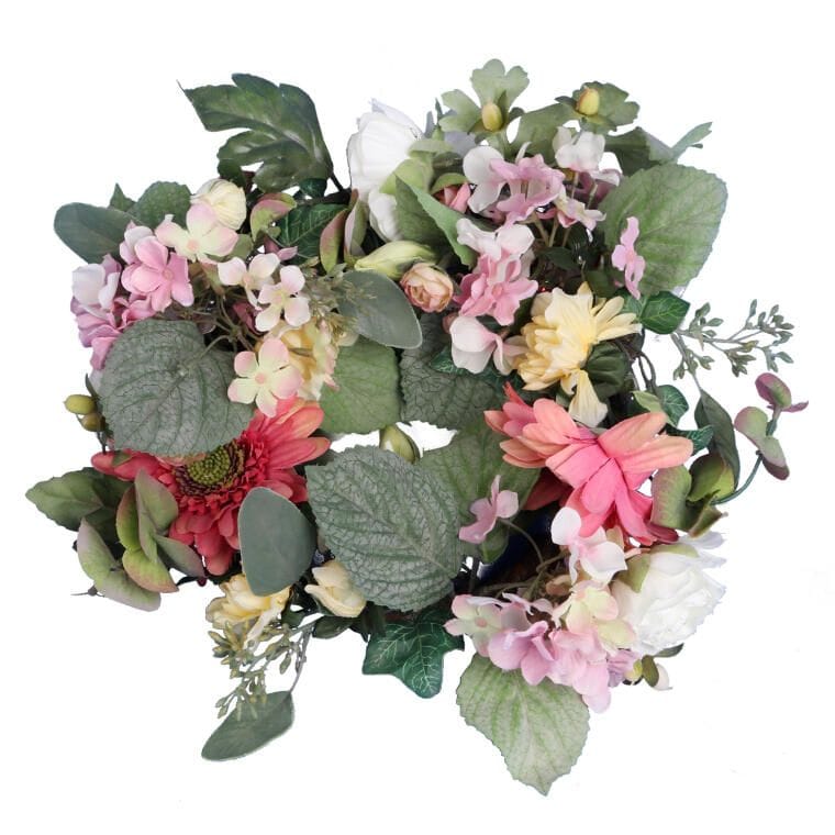 Wyjątkowy wianek ze sztucznych hortensji i gerber w subtelnej różowo-białej kolorystyce to elegancka dekoracja, która doda wnętrzu klasy i uroku. Wykonany z wysokiej jakości materiałów, wiernie odwzorowuje naturalne kwiaty tworząc efektowną ozdobę na stół, komodę lub jako stroik na świecę. Dzięki starannie dobranej kompozycji doskonale wpasuje się w różne aranżacje, nadając im lekkości i romantycznego charakteru. To ponadczasowy element dekoracyjny, który podkreśli wyjątkowy styl Twojego otoczenia.