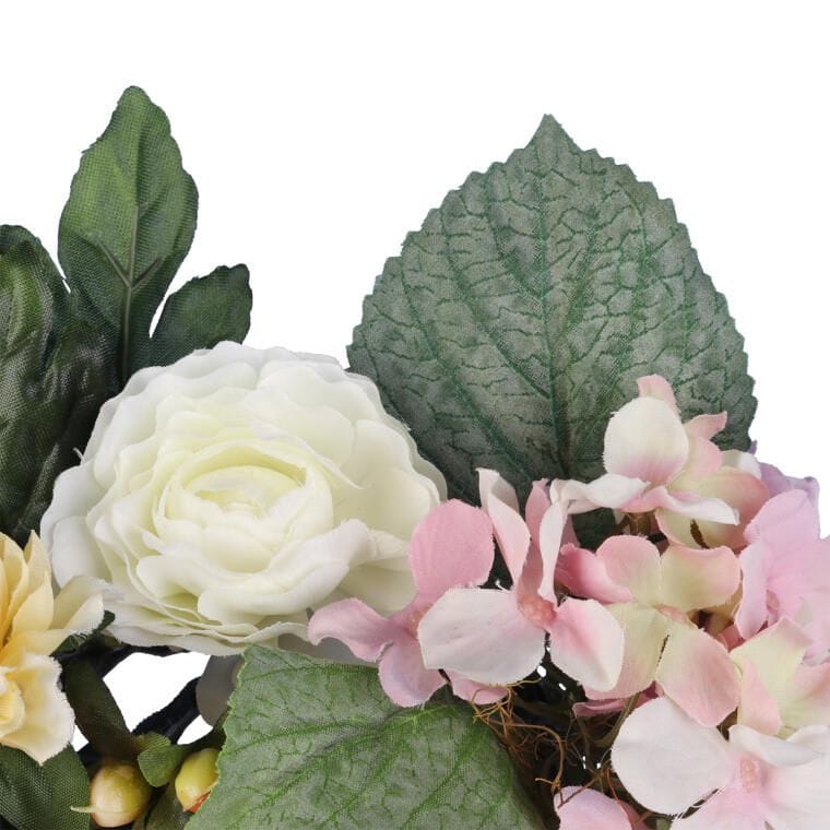 Stylowy wianek ze sztucznych róż, hortensji i gerber w delikatnej różowo-białej kolorystyce to wyjątkowa dekoracja, która wniesie do wnętrza elegancję i subtelny urok. Wykonany z najwyższej jakości materiałów, wiernie odwzorowuje naturalne kwiaty, tworząc efektowną ozdobę na stół, komodę lub jako stroik na świecę. Dzięki harmonijnej kompozycji doskonale sprawdzi się w różnych aranżacjach, nadając im lekkości i romantycznego charakteru. To ponadczasowa dekoracja, która doda stylu każdemu wnętrzu.