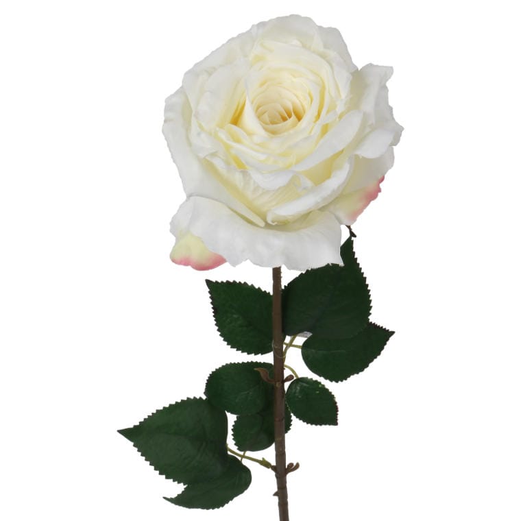 Sztuczna gałązka rozwiniętej róży z kolcami w kolorze białym to wyjątkowa dekoracja, która wprowadza do wnętrza elegancję i romantyzm. O długości 70 cm, ta gałązka doskonale sprawdzi się jako samodzielny akcent w wazonie lub jako część większej kompozycji kwiatowej. Biała róża symbolizuje czystość, niewinność oraz miłość, co czyni ją idealnym wyborem na różnorodne okazje, od ślubów po uroczystości rodzinne. Dzięki starannemu wykonaniu i realistycznemu wyglądowi, ta sztuczna róża przypomina świeżo zerwaną, a jej trwałość sprawia, że będzie cieszyć oko przez długi czas, nie wymagając specjalnej pielęgnacji. Gałązka z kolcami dodaje naturalnego charakteru i autentyczności, co czyni ją doskonałym wyborem do wszelkich aranżacji, dodając odrobinę uroku i romantycznego klimatu każdemu pomieszczeniu.