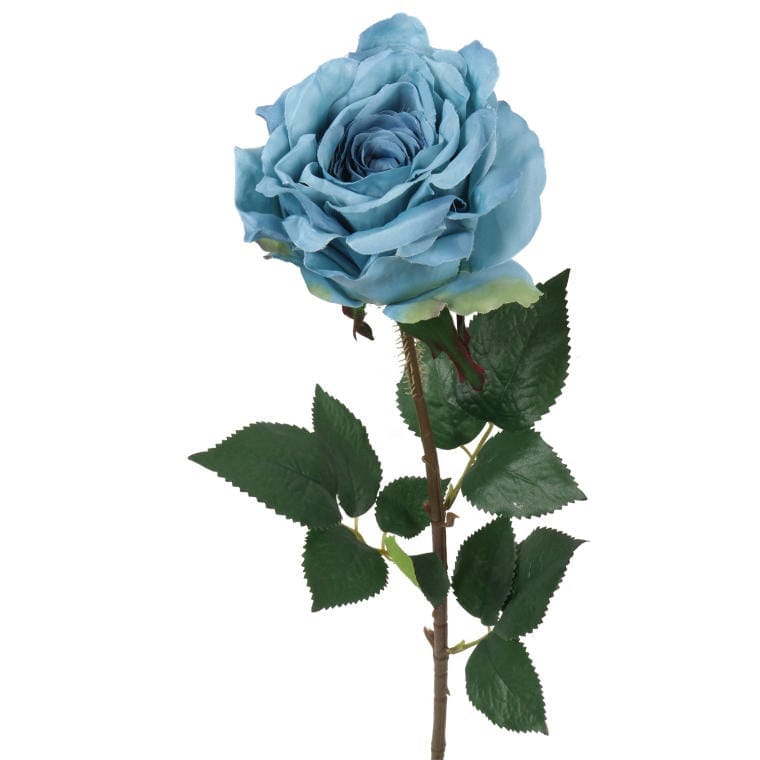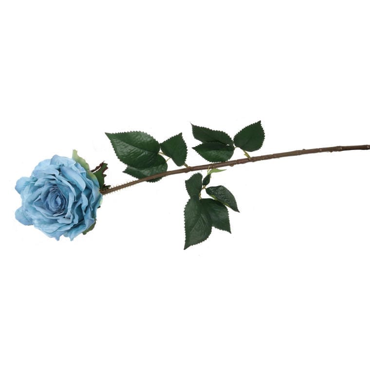Gałązka rozwiniętej róży z kolcami w kolorze niebieskim to niezwykle oryginalny i efektowny element dekoracyjny, który wprowadza do wnętrza świeżość oraz nietuzinkowy styl. O długości 70 cm, ta sztuczna gałązka doskonale sprawdzi się jako samodzielna ozdoba lub w połączeniu z innymi kwiatami, tworząc zachwycające kompozycje w wazonach. Niebieskie róże, rzadko spotykane w naturze, symbolizują tajemniczość, marzenia i kreatywność, co czyni je idealnym akcentem dla osób poszukujących unikalnych dekoracji.