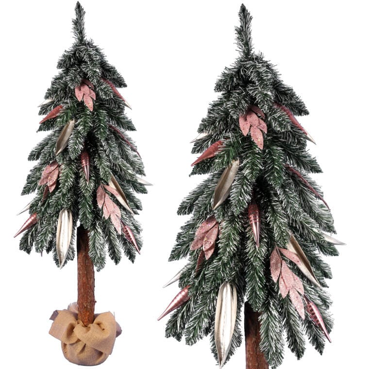 Różowa Choinka Świąteczna Ekskluzywna z Naturalnym Pniem i Brokatowymi Dekoracjami, 100 cm
