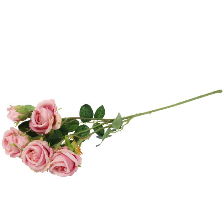 Różowa Gałązka Dekoracyjna z 5 Róż i Pąkami – Realistyczna Wygląd, 64 cm.