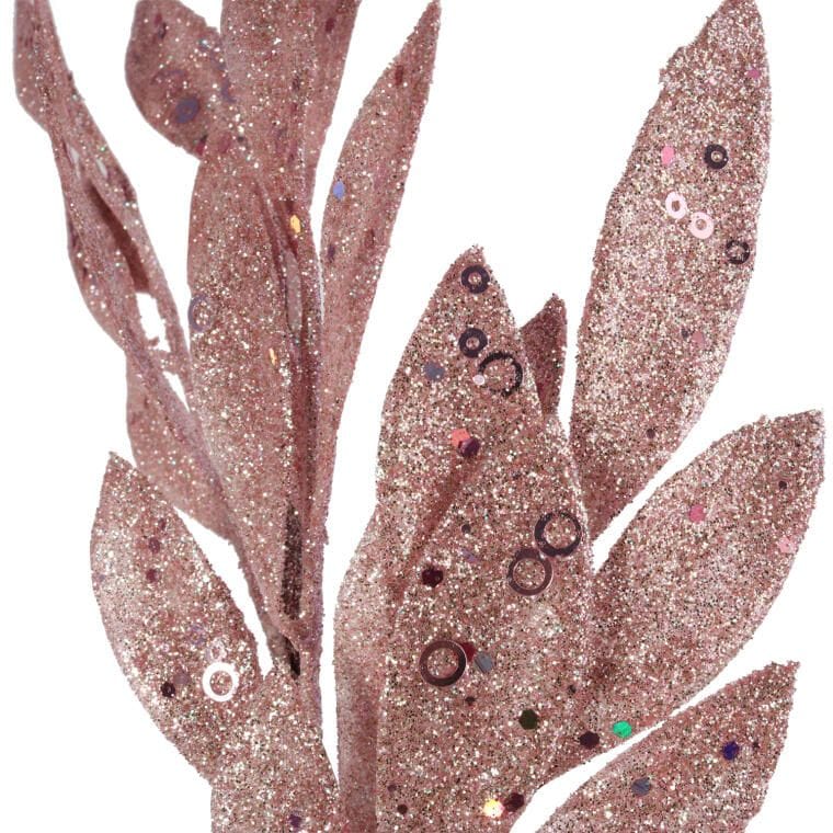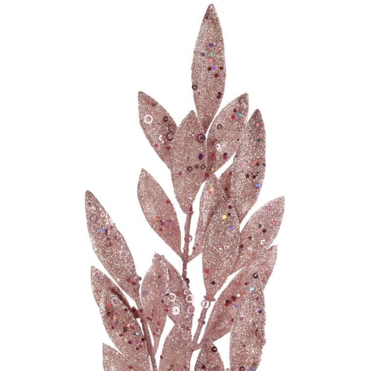 Różowa gałązka z liśćmi oliwnymi pokryta brokatem, 75 cm
