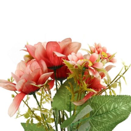 Sztuczna gałązka z pięcioma margaretkami w subtelnym różowym kolorze to wyjątkowa dekoracja, która dodaje wnętrzom świeżości i delikatności. Ta realistycznie wykonana gałązka o długości 68 cm przyciąga wzrok swoim naturalnym wyglądem i starannie odwzorowanymi detalami, sprawiając, że doskonale imituje żywe kwiaty. Idealnie sprawdzi się jako ozdoba do wazonów, kompozycji kwiatowych, bukietów i aranżacji florystycznych, zarówno w domach, jak i w przestrzeniach publicznych, takich jak biura, restauracje czy hotele. Różowe margaretki nadają wnętrzu lekkości i elegancji, wprowadzając jednocześnie romantyczny, przytulny klimat, a wytrzymałe materiały gwarantują trwałość i intensywność koloru na długi czas.