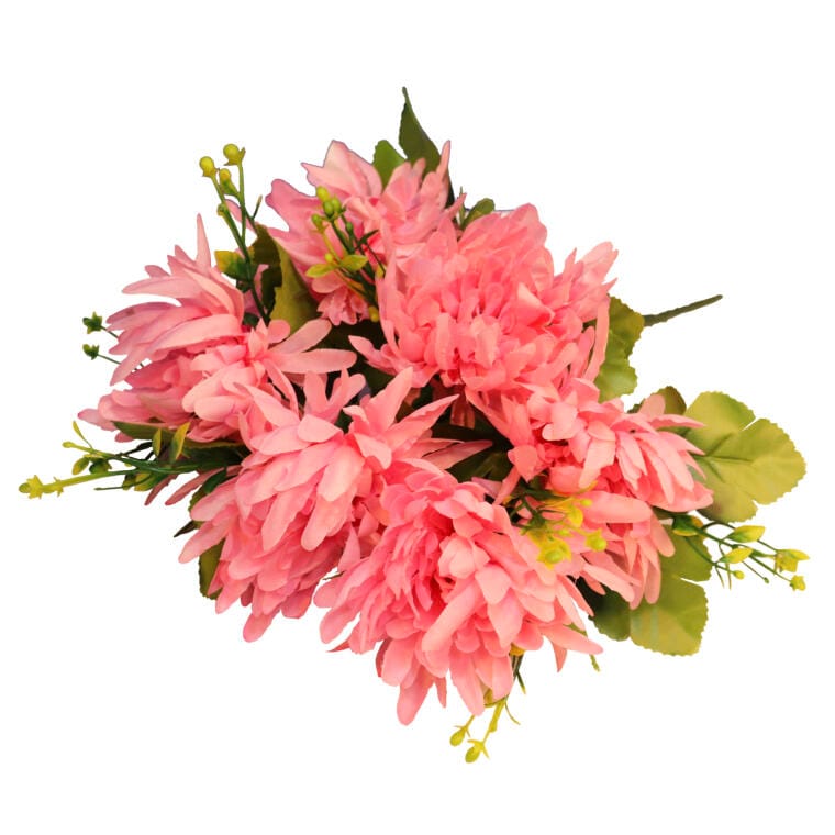 Różowy Bukiet Sztucznych Chryzantem 35 cm z Dodatkami na Wszystkich Świętych
