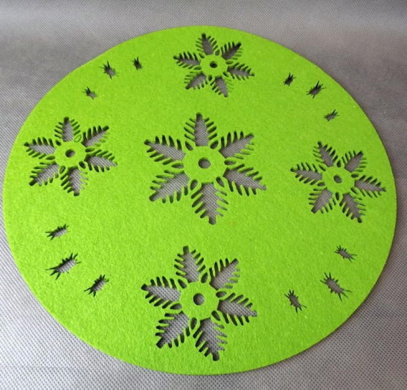 Serweta filcowa okrągła w płatki śniegu w kolorze zielonym