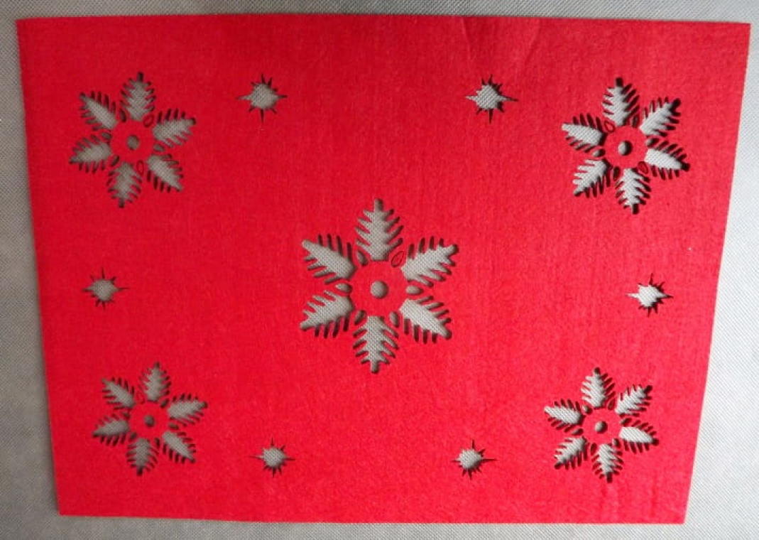 Serweta filcowa prostokątna w płatki śniegu w kolorze czerwonym