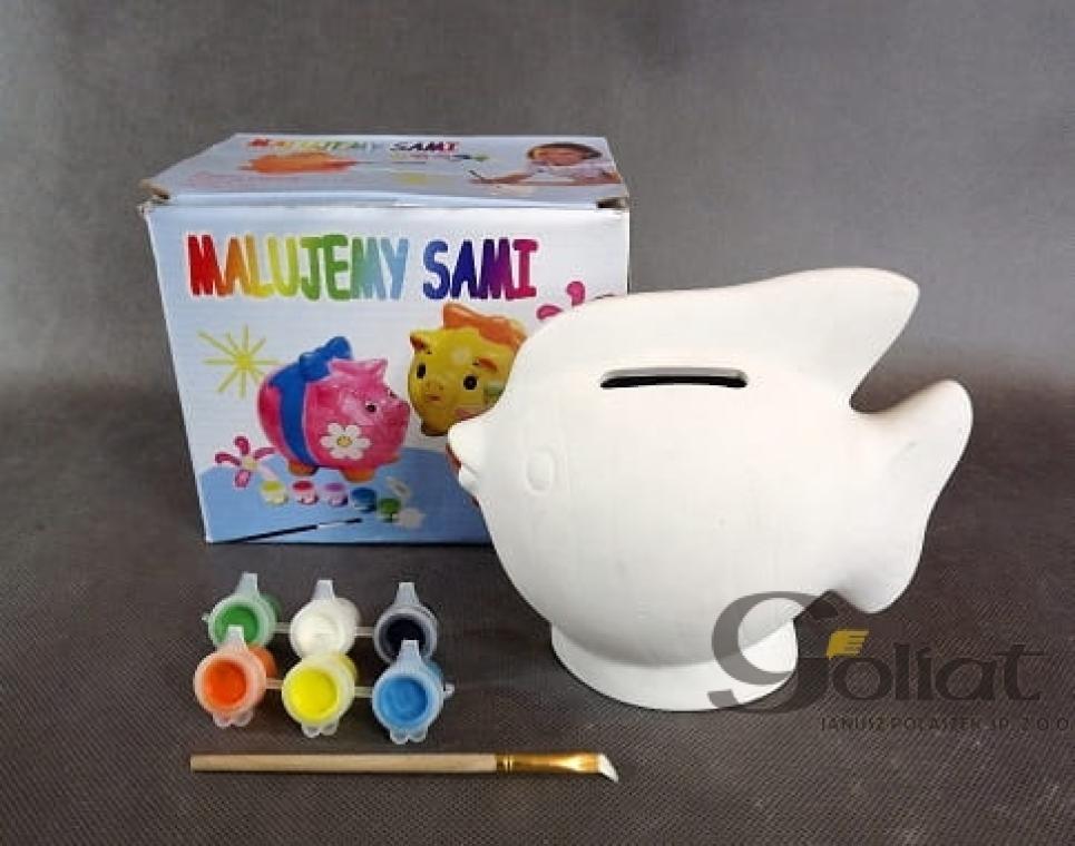Oferujemy fantastyczną skarbonkę ceramiczną w kształcie rybki, która zapewni nie tylko świetną zabawę, ale także kreatywną zabawę dla dzieci i dorosłych. W zestawie znajduje się pędzel oraz sześć intensywnych kolorów farb, które umożliwią stworzenie unikalnych i oryginalnych wzorów. Aby utrwalić piękne kolory, wystarczy włożyć pomalowaną skarbonkę do piekarnika na zaledwie 3 minuty, co pozwala na cieszenie się trwałym efektem. Ta zabawka jest nietoksyczna i w pełni bezpieczna dla dzieci, co czyni ją idealnym wyborem dla rodziców, którzy pragną wspierać kreatywność swoich pociech. Skarbonka ceramiczna ma wymiary 14x14x8 cm, co sprawia, że doskonale nadaje się do zbierania drobnych monet i oszczędności. Dzięki tej wyjątkowej skarbonce, dzieci będą mogły rozwijać swoje umiejętności artystyczne oraz cieszyć się nauką oszczędzania w radosny sposób. Wybierz tę rybkę, aby dodać odrobinę koloru i radości do swojego domu!