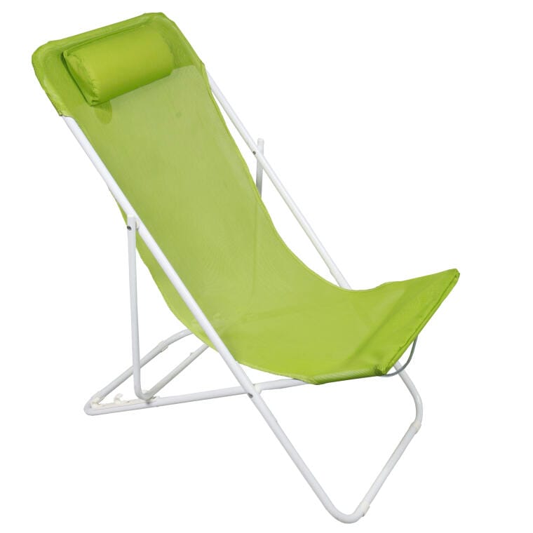 Składany leżak plażowy 3-pozycyjny z zagłówkiem i odpornym na warunki atmosferyczne siedziskiem, kolor Zielony.