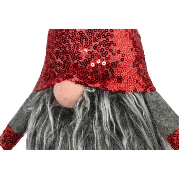 Skrzat w Czerwono-Szarej Czekinowej Czapie 40 cm