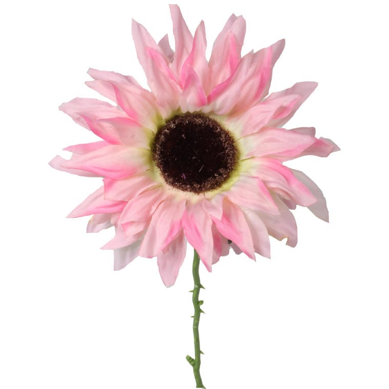 Sztuczny kwiat – pojedynczy słonecznik w kolorze różowym. Ten wyjątkowy kwiat o wysokości 64 cm i średnicy 16 cm (fi 16 cm) wprowadza do wnętrza subtelny, ale wyrazisty akcent kolorystyczny. Delikatny różowy odcień słonecznika nadaje mu nietypowy i elegancki charakter, doskonale wpisując się w różnorodne aranżacje – zarówno nowoczesne, jak i klasyczne. Idealny jako samodzielna dekoracja lub w kompozycjach kwiatowych, doda uroku każdemu pomieszczeniu, wprowadzając ciepło i delikatność.